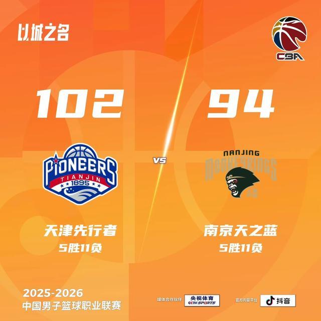 现代快报讯(记者 王卫)1月18日晚,2025-2026赛季CBA联赛第16轮,南京同曦做客天津,客场挑战天津男篮。此役是同曦新外援汉兹到队的第二场比赛,球队94-102不敌对手,没能取得客场连胜。首节开战,球队派出李斌卓,郭昊文、赵柏清、所罗门及汉兹的首发组合,天津男篮23-22南京同曦。进入次节,詹姆斯空切上篮,祝铭震两罚中一,马内克顺下轻松上篮,两队战...